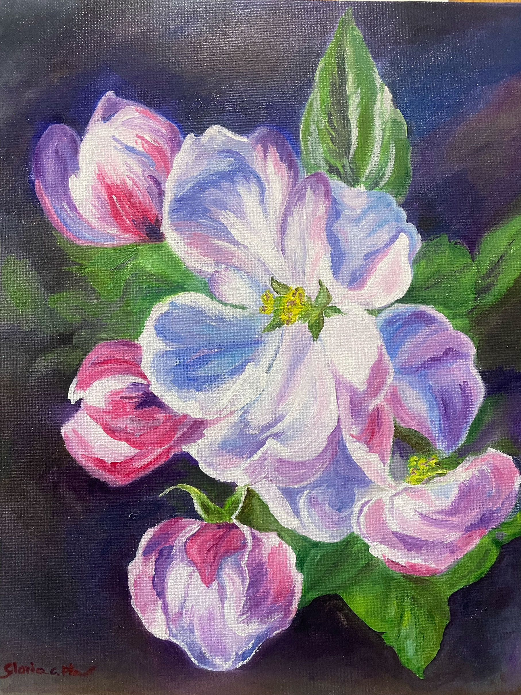 Obra de gran intensitat cromàtica que juga amb el contrast entre llum i foscor. Les flors semblen il·luminar-se des de dins, com si bateguessin.